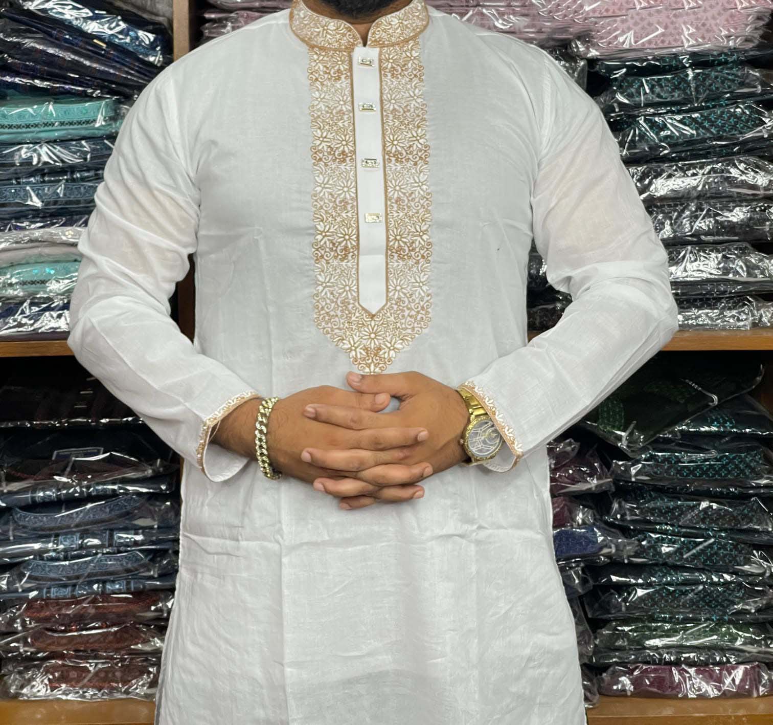 Premium Panjabi made with dhuti fabric and snap button. Comfortable and suitable for regular wear. Available at Shop Now BD Online.